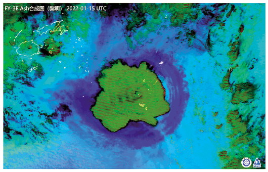 ▲這是中國(guó)氣象局提供的1月15日風(fēng)云三號(hào)E星多通道合成圖。圖中顯示,湯加火山噴發(fā)時(shí)形成的火山灰蘑菇云紋理結(jié)構(gòu)清晰可見,形成直徑近500公里的傘形云團(tuán),傘形云團(tuán)周邊出現(xiàn)環(huán)狀的沖擊波,向四周擴(kuò)散?!   ⌒氯A社發(fā)(中國(guó)氣象局供圖)