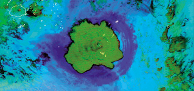 然而,地球自身的修復(fù)能力也令人驚嘆。2016年8月,當(dāng)記者乘坐“張謇”號(hào)科考船再次來到拉包爾,這座火山已經(jīng)停止了冒煙,黝黑的身軀已變得柔和安靜,在周圍山脈之間已不再顯得那么突兀。